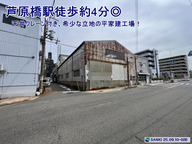 JR環状線芦原橋駅より徒歩約4分、通勤に便利な立地で、希少な浪速区の準工業地域エリア内です!平家建てで天井高が高く、天井クレーンあります。鋼管の加工工場で使われておりました。10tトラックを入庫させることも可能です。(歩道に若干車体がでます。)入口部の道路と平坦な部分より奥は土間コンクリートにより床が上がっております。図面斜線の木造部分は賃貸面積に含んでおりませんが、別料金にて賃貸可能です。 |