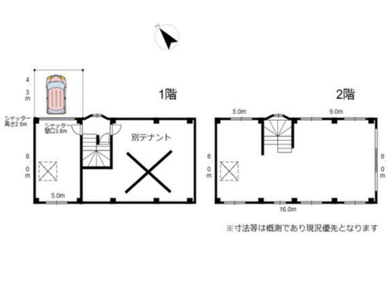 | 建物間口・奥行き | 間口:16m 奥行き:8m |