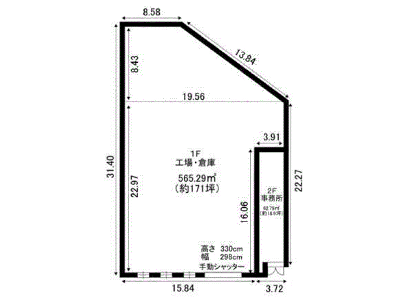 | シャッター | H: 3.3m W: 2.98m |