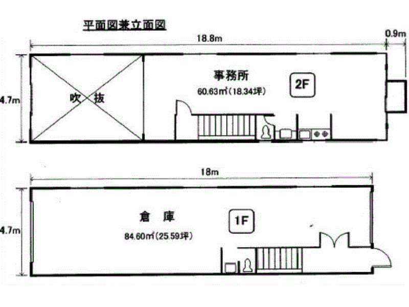 構造/階数 | 鉄骨造/2階建ての1~2階部分 |