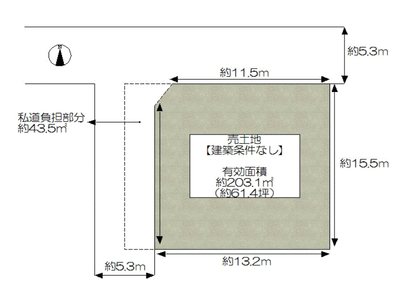 | 道路幅員 | 角地 北 5.3m 西 5.3m | ||