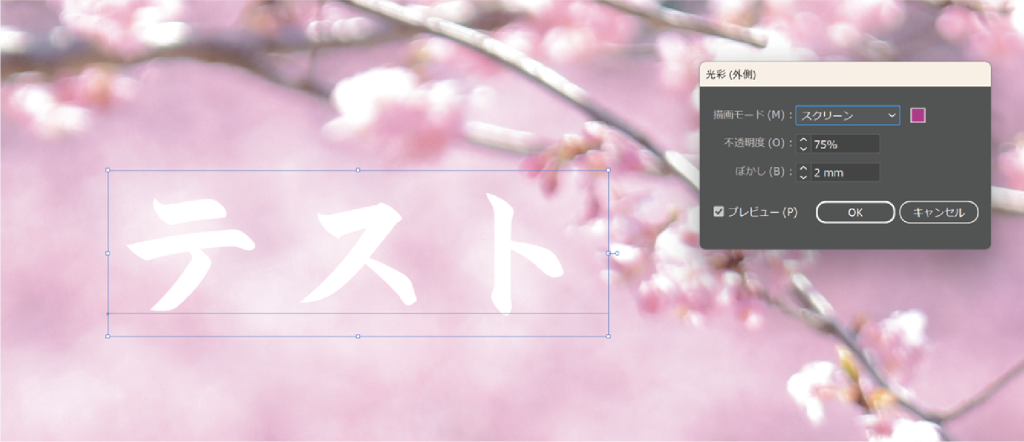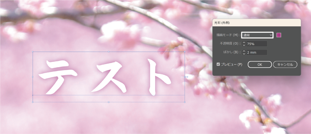 光彩(外側)の効果をつけようとしたけど、なぜか適用されない。