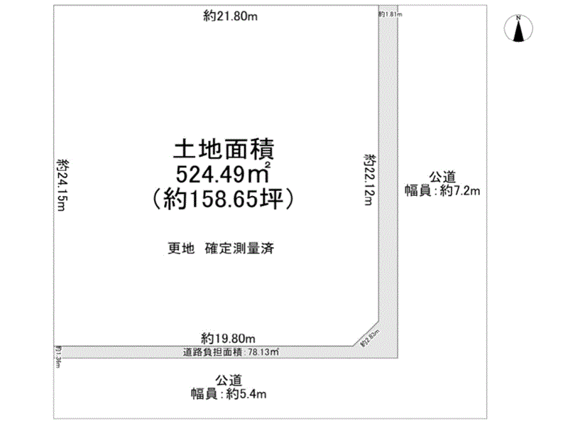 | 道路幅員 | 二方 東 7.2m 南 5.4m | ||